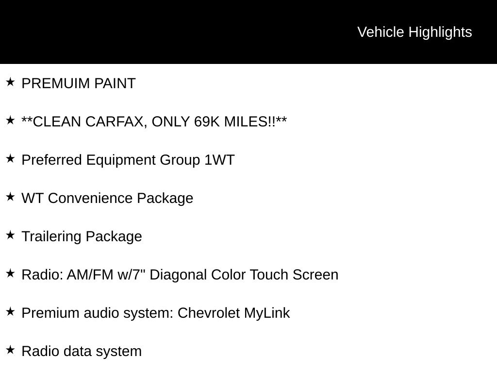 Step inside and experience the thoughtful design and impressive technology. The Chevrolet MyLink premium audio system, Bluetooth connectivity, and 110-volt power outlet provide the connectivity and convenience you demand. The heavy-duty suspension, speed-sensing steering, and electronic stability control ensure a confident and controlled driving experience, whether hauling heavy loads or navigating challenging terrain.