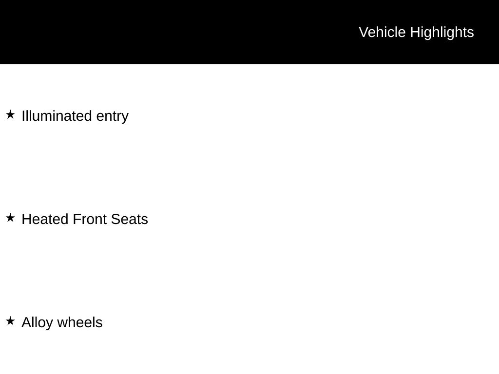 - Heated front seats Heated driver and front passenger seats