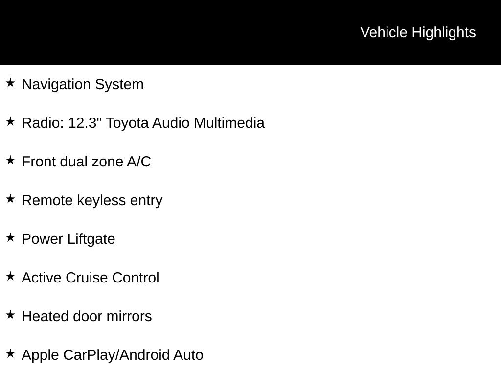 The Grand Highlander's advanced safety features, including a comprehensive suite of airbags, Brake Assist, and Rear Camera, provide you and your loved ones with the peace of mind you deserve. Seamless smartphone integration through Apple CarPlay and Android Auto allows you to stay connected on the go, while the 12.3" Toyota Audio Multimedia system keeps you entertained and informed.
