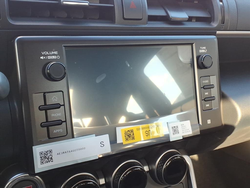- GR86 Audio—includes 8-in. touchscreen, eight speakers including amplifier, Apple CarPlay® & Android Auto™ compatibility, SiriusXM® 3-month trial subscription. See toyota.com/audio-multimedia for details.