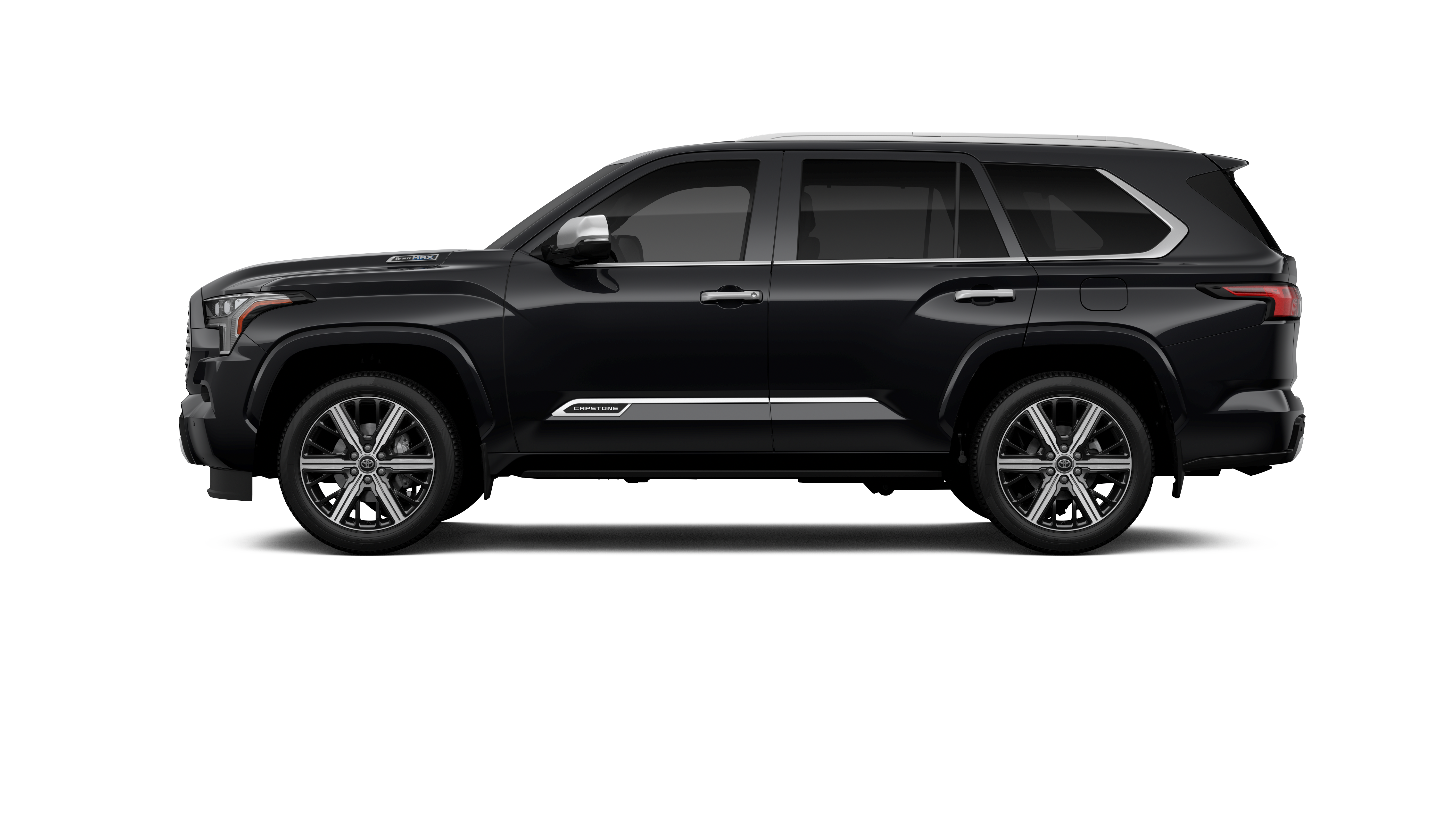 - Bright-chrome "SEQUOIA" rear door badge; chrome "CAPSTONE" door badge, garnish and window molding; color-keyed overfenders