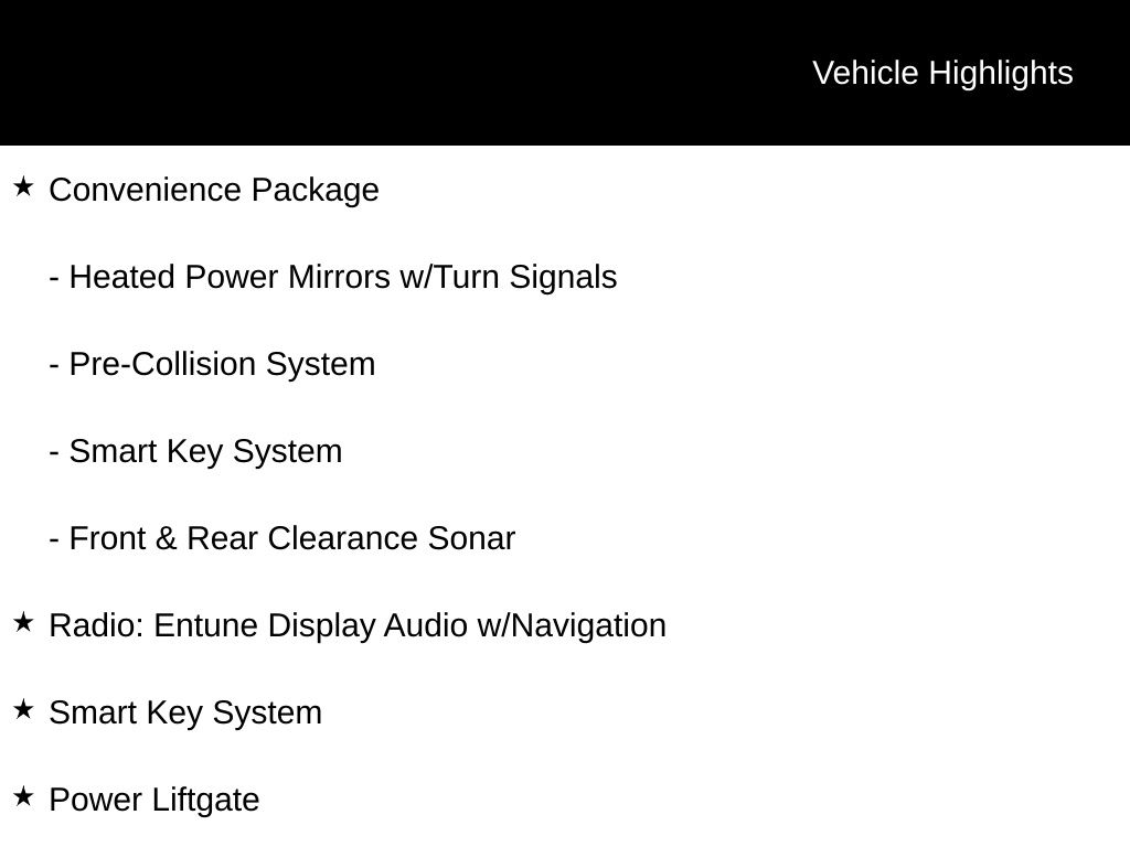 ** ONE OWNER, ONLY 35K MILES!!** Equipped with 17” ALLOY WHEELS, Dynamic Torque Control AWD, Vehicle Stability Control, Traction Control, Electronic Brake Distribution, Brake Assist, Smart Stop Technology, Electronic Power Steering, Pre-Collision System w/Pedestrian Detection, Lane Departure Alert w/Steering Assist, Auto High Beams, Dynamic Radar Cruise Control, FOGLIGHTSM HEATED POWER OUTSIDE MIRRORS, POWER MOONROOF & LIFTGATE, FRONT & REAR PARKING SONAR, BLIND SPOT MONITORING w/REAR CROSS TRAFFIC ALERT, BACKUP CAMERA, PREMIUM ENTUNE AUDIO w/INTEGRATED NAVIGATION, HD RADIO, HD PREDICTIVE WEATHER OVERLAY, AM/FM/USB/AUX/BLUETOOTH, Keyless Remote Entry!!