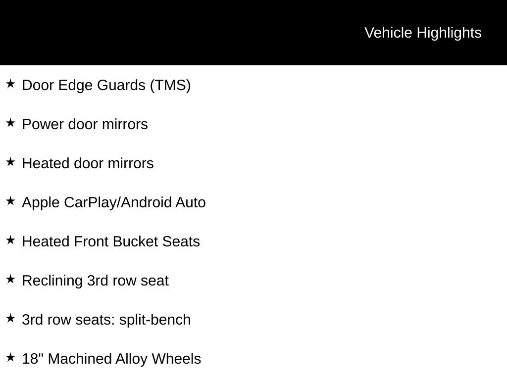 Step inside the Highlander XLE and experience the epitome of modern comfort and convenience. Sink into the heated, power-adjustable SofTex-trimmed front seats, enjoy the seamless integration of Apple CarPlay and Android Auto, and let the premium audio system transport you with its rich, immersive sound.