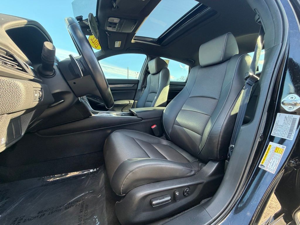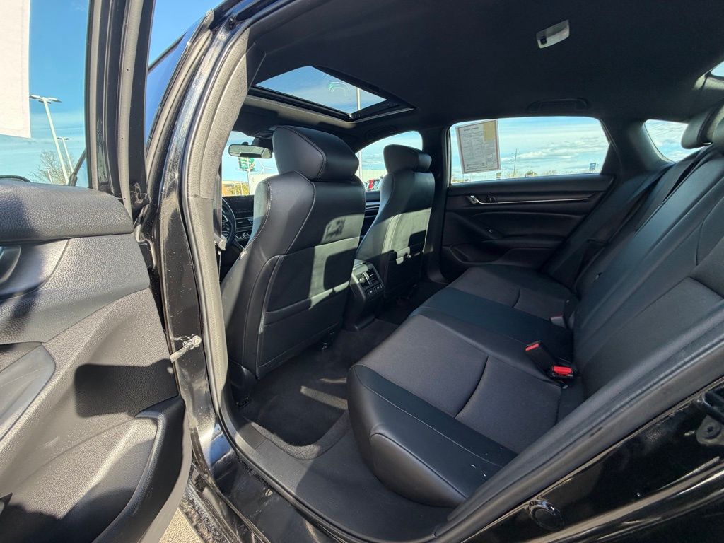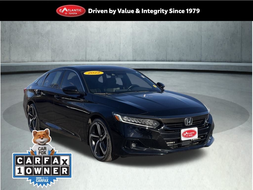 CARFAX One-Owner. New Price! Crystal Black Pearl 2022 Honda Accord Sport 2.0T FWD 10-Speed Automatic I4 DOHC 16V Turbocharged Black w/Fabric w/Synthetic Leather Seat Trim, 8 Speakers, Adaptive Cruise Control: Adaptive Cruise Control (ACC) with Low-Speed Follow, Apple CarPlay/Android Auto, Blind Spot Information (BSI) System warning, Exterior Parking Camera Rear, Fabric w/Synthetic Leather Seat Trim, Forward collision: Collision Mitigation Braking System (CMBS) + FCW mitigation, Front dual zone A/C, Fully automatic headlights, Heated door mirrors, Heated Front Bucket Seats, Lane Departure Warning System, Leather steering wheel, Power moonroof, Radio: 180-Watt AM/FM/HD/SiriusXM Audio System, Remote keyless entry, Wheels: 19" Machine-Finished Alloy w/Black Inserts.