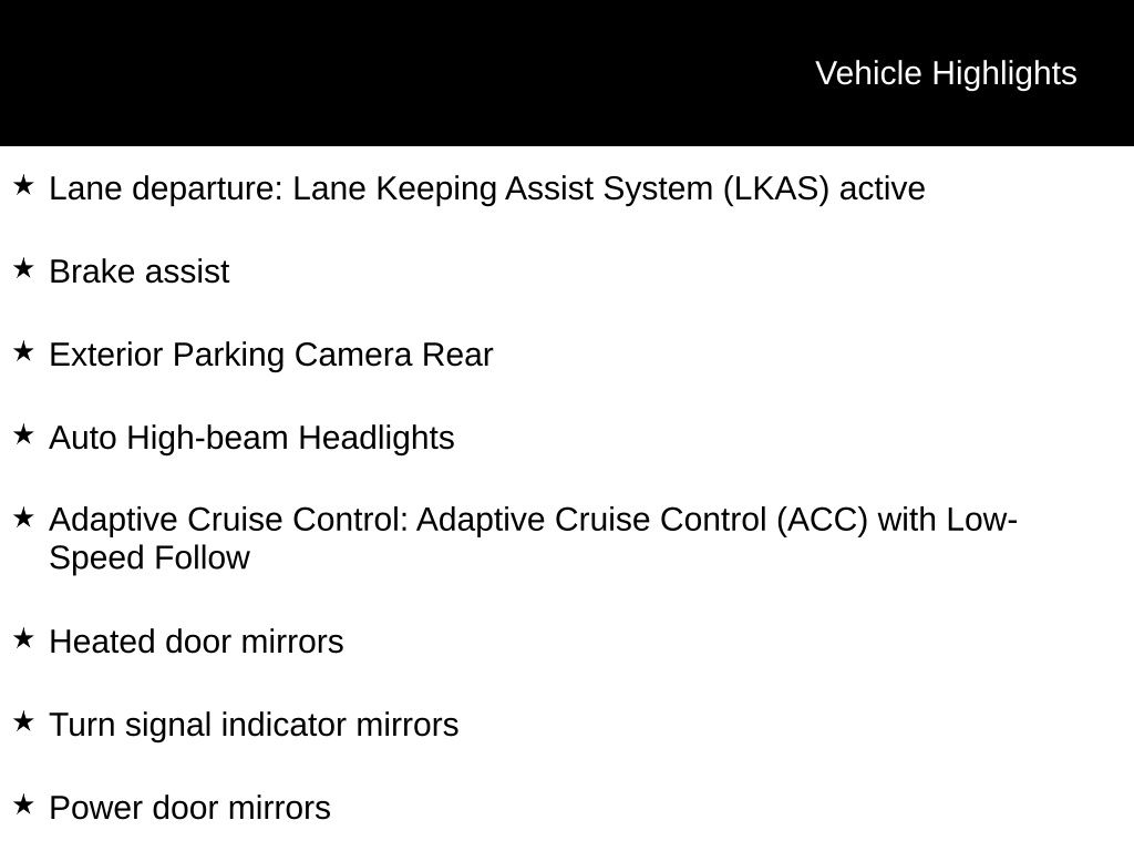 - Adaptive Cruise Control (ACC) with Low-Speed Follow