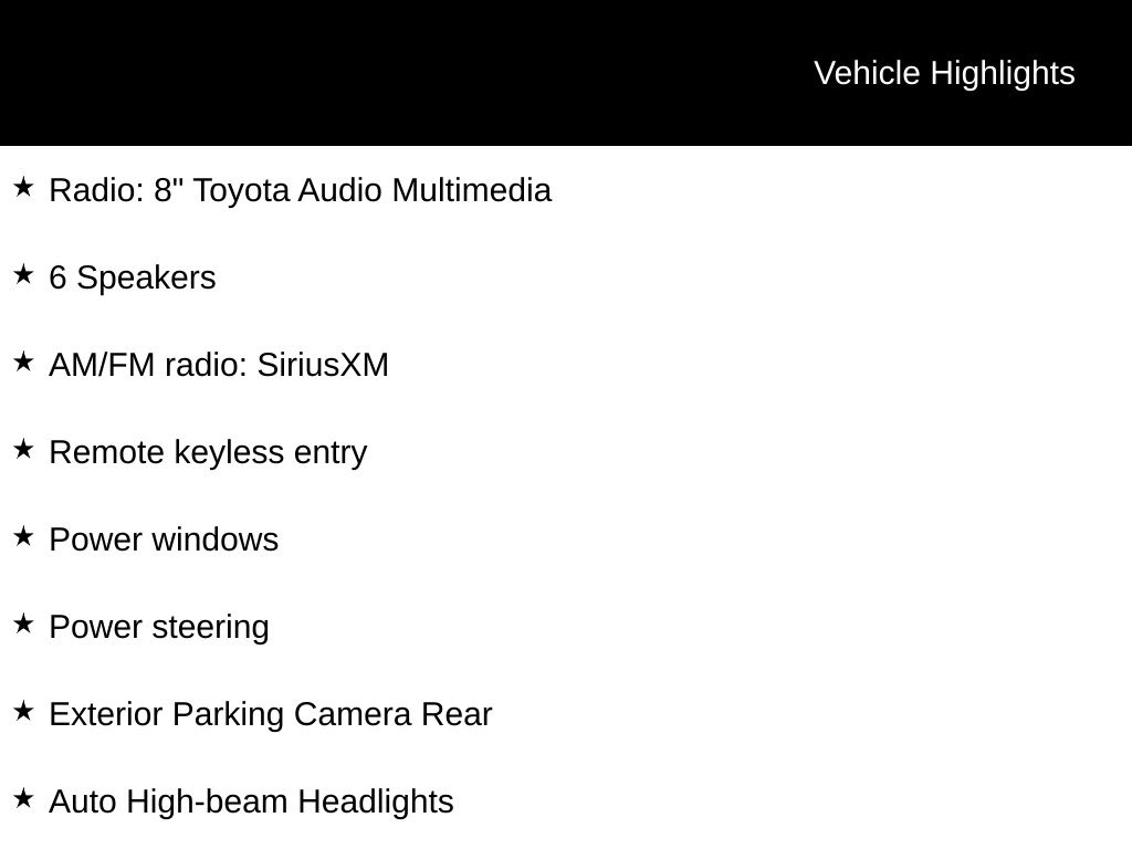 • Radio: 8" Toyota Audio Multimedia