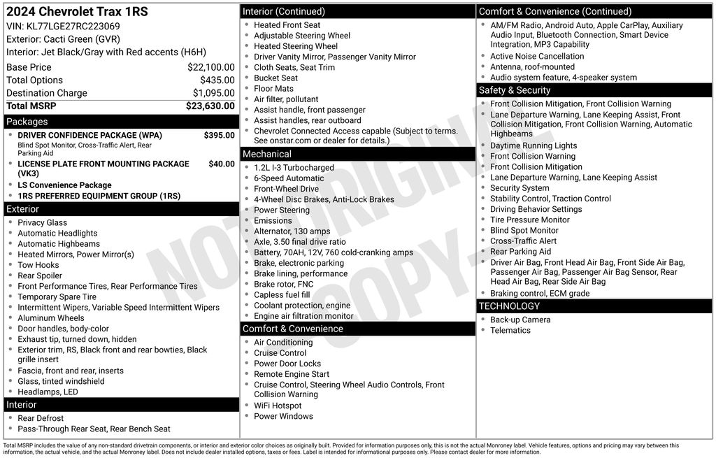 Elevate your driving experience and make every journey a memorable one with the 2024 Chevrolet Trax 1RS. Discover the perfect blend of style, performance, and technology that will leave you eager to get behind the wheel. Visit our showroom today and let us demonstrate why the Trax 1RS is the perfect choice for your next adventure.