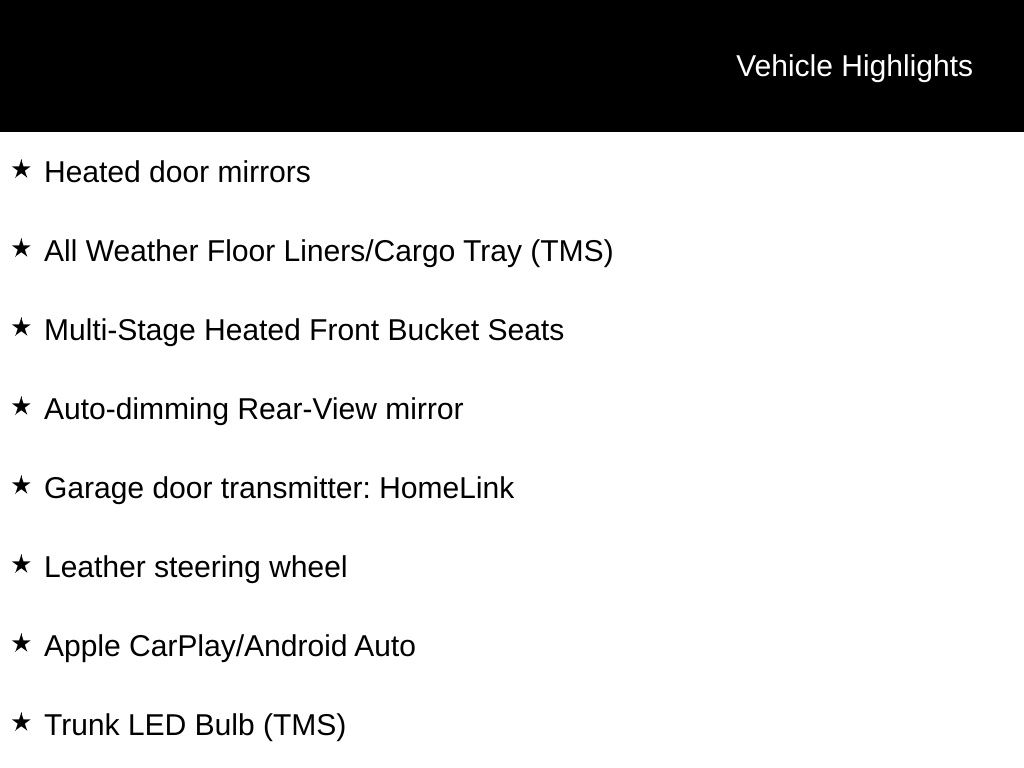 - Heated front seats Heated driver and front passenger seats