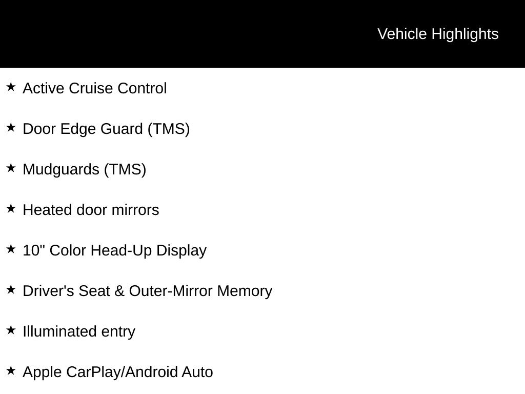 - Lane Tracing Assist (LTA) hands-on cruise control
