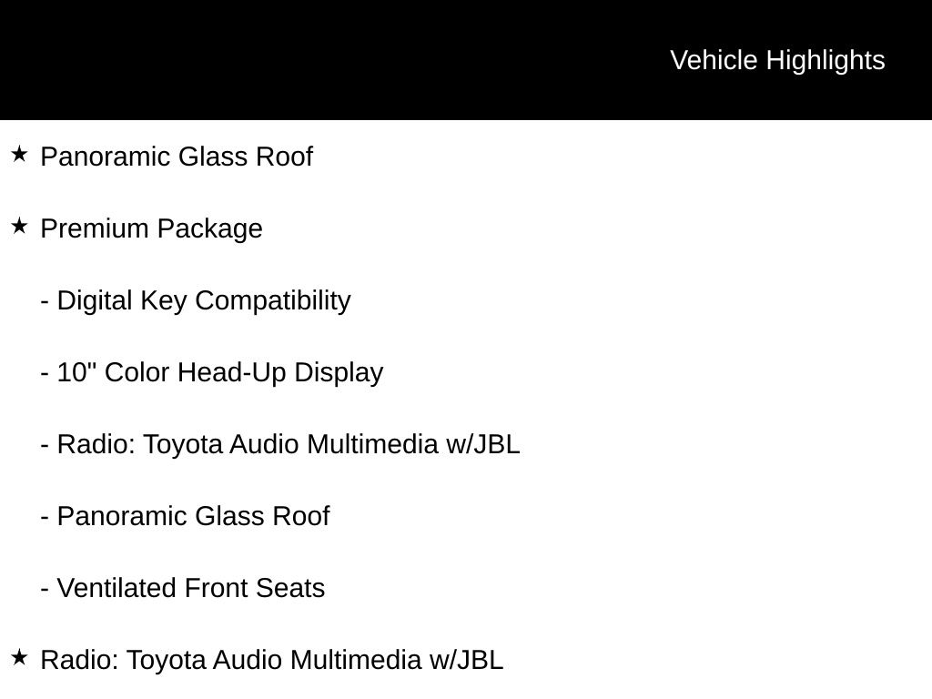 • Radio: Toyota Audio Multimedia w/JBL